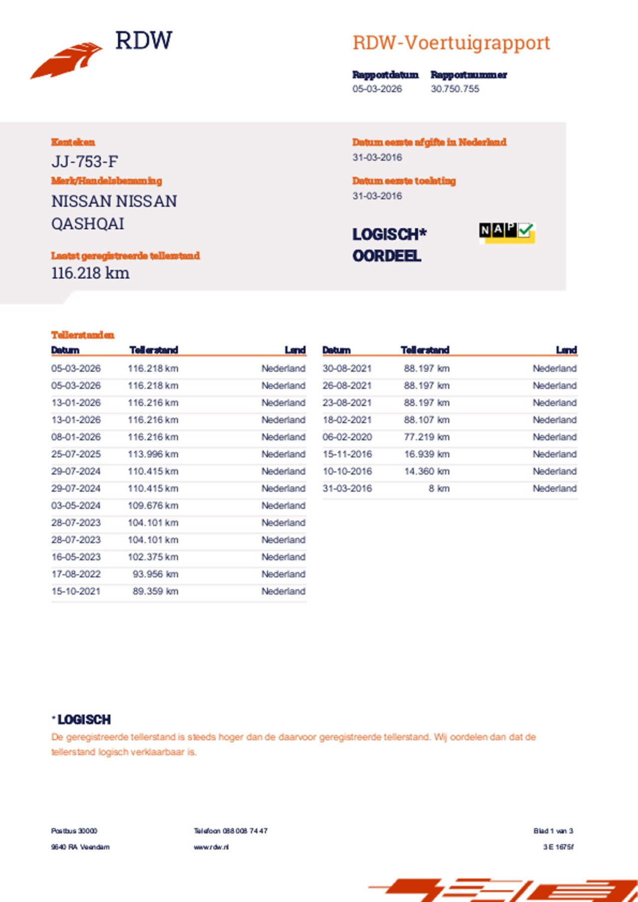 | Kilometerstand | 116.218 km |