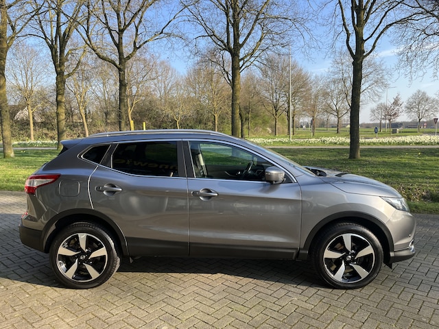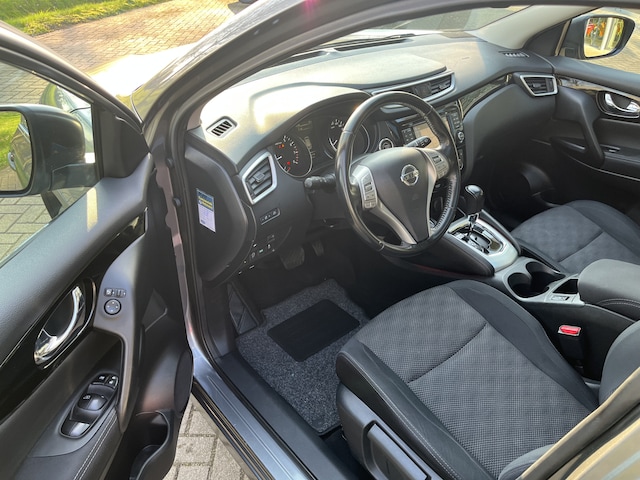 Het inventieve 360 graden camerasysteem op deze auto heeft de functie om u assistentie te bieden in nauwe ruimtes en straten, waar het achteruit rijden vaak een uitdaging is. Bij de luxe van deze auto hoort ook electronic climate control. Een plekje vinden in de binnenstad is één, inparkeren is twee. Voor dat laatste heeft deze Nissan Qashqai prima parkeersensoren die u een handje helpen. Met de cruise control komt u bijna nog fitter aan dan u vertrekt. Deze Nissan Qashqai is voorzien van keyless entry, waardoor de portieren en achterklep vanzelf open gaan als u in de nabijheid komt. En deze auto heeft ook navigatiesysteem, DAB ontvangst, automatisch dimmende binnenspiegel, lederen stuur en isofix-aansluiting als standaard uitrusting.