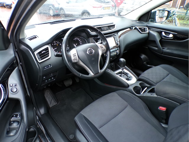 De functie van deze 360 graden camera is vooral nuttig in smalle straatjes waar het zicht beperkt is. De auto is ook uitgevoerd met automatische airconditioning. Soms heeft u meer parkeerruimte dan u denkt. Maar soms ook niet. De parkeersensoren vertellen precies hoeveel. Natuurlijk is er ook cruise control aan boord, waarmee u meer ontspannen en zuiniger rijdt. Een handige optie is de keyless entry: de Nissan Qashqai opent automatisch alle sloten zodra u dichtbij bent. En dan is deze auto ook nog eens voorzien van navigatiesysteem, DAB ontvangst, automatisch dimmende binnenspiegel, isofix-aansluiting en verstelbaar stuur.