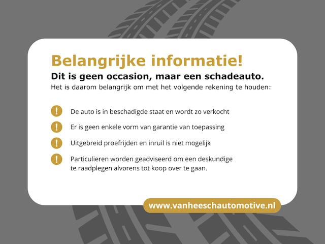 Ondanks het feit dat wij onze uiterste best doen om je correct te informeren kan het voorkomen dat uitvoeringen anders zijn dan aangegeven. Je kunt geen rechten ontlenen aan hetgeen gepresenteerd is. Om deze reden ben je altijd van harte welkom om je aankoop, vooraf, zelf te controleren. Op al onze voertuigen is geen enkele vorm van garantie, coulance, teruggave, omruiling, terugbetaling of reclamatie mogelijk. (Prijs)wijzigingen, fouten en eerdere verkopen zijn voorbehouden.