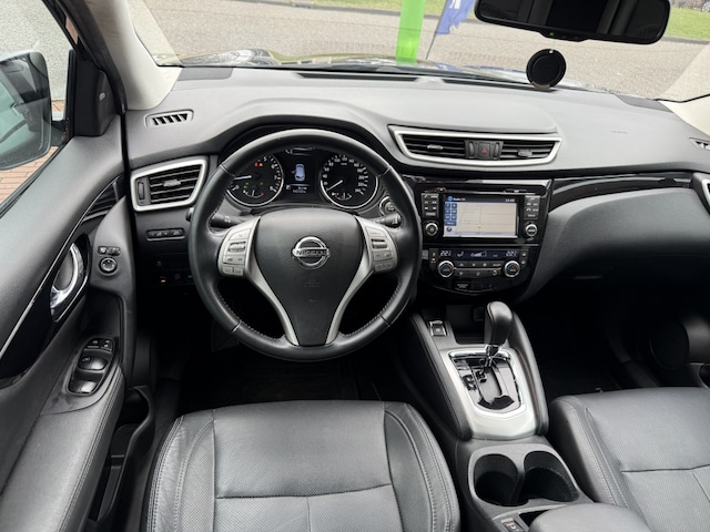 Zeer nette, Nederlands geleverde Nissan Qashqai uit 2015 met de 1.2L motor (116 pk) en automatische transmissie. De auto is dealeronderhouden en wordt geleverd met originele, afgestempelde onderhoudsboekjes. Rijk uitgerust met o.a. afneembare trekhaak, navigatiesysteem, volledig lederen interieur en een glazen panoramadak