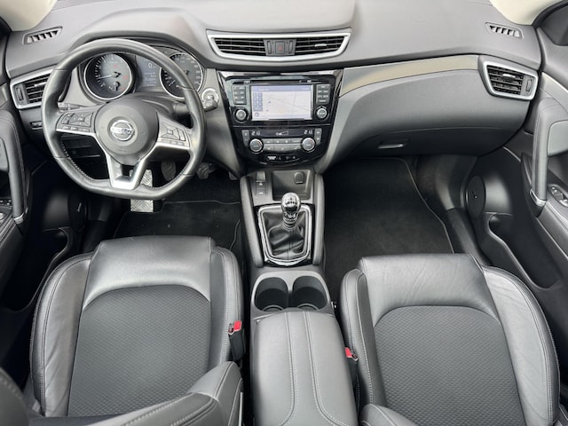 Doordachte techniek en intelligente systemen zijn pas waardevol wanneer ze een functie hebben. Meer dan wie ook hebben de Japanse autofabrikanten dit door, en dat merkt u ook aan deze Nissan Qashqai. Met zijn benzinemotor en handgeschakelde zesversnellingsbak is dit een prima auto voor nog vele kilometers. Stoelverwarming maakt deel uit van de rijke uitrusting van deze auto. Geniet van het uitzicht naar buiten door het riante glazen panoramadak. Tot de uitrusting behoren ook 19 inch lichtmetalen velgen, LED koplampen, halflederen bekleding, extra getint glas, in delen neerklapbare achterbank en verstelbare lendensteunen.