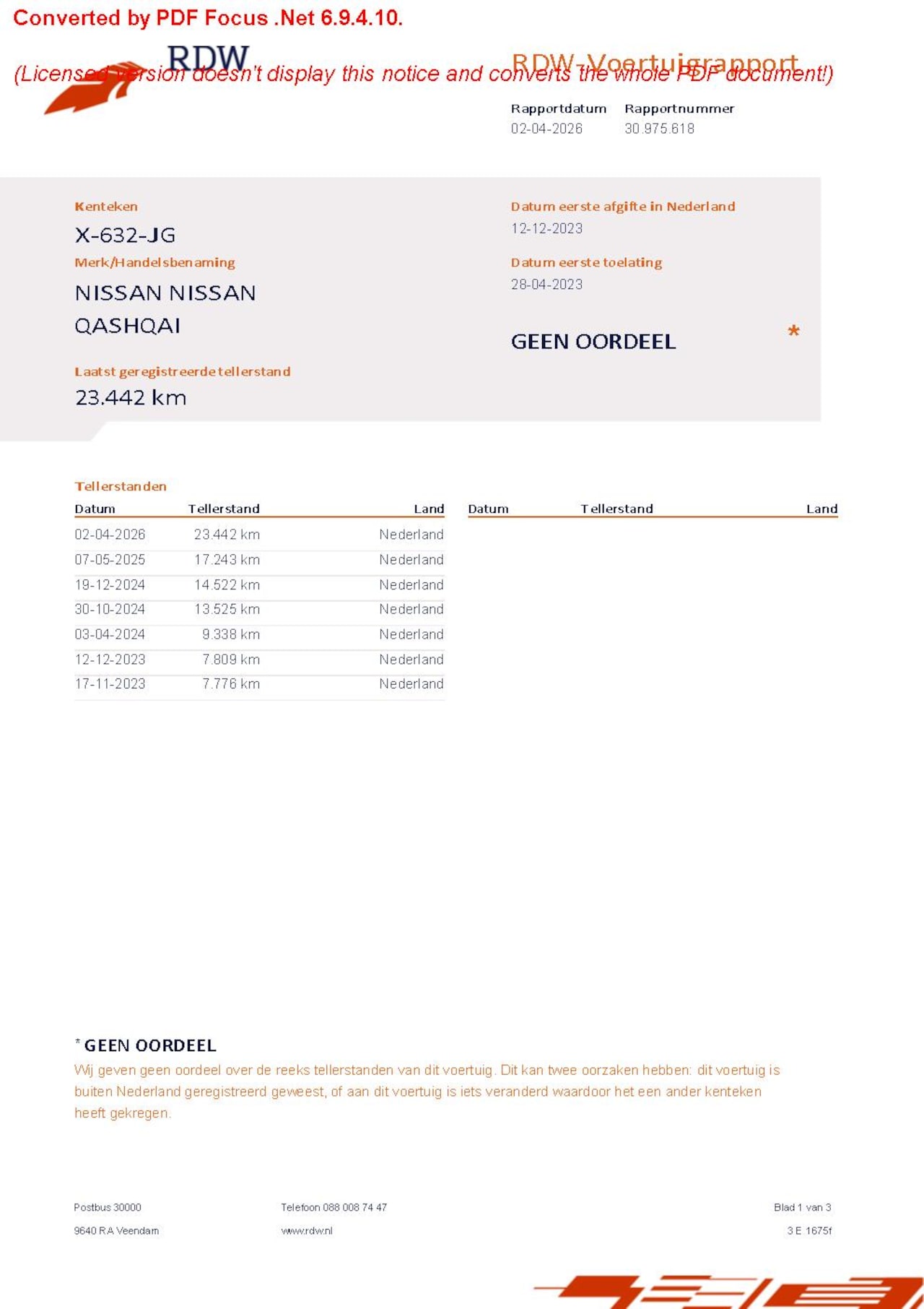 | Kilometerstand | 23.442 km |