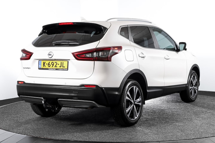 Dankzij de 360 graden camera kunt u zowel de voor- als achterzijde van het voertuig in het oog houden, wat bijdraagt aan een veiligere rijervaring. De auto is voorzien van een trekhaak en is een uitstekende caravantrekker. In deze Qashqai vindt u niet alleen schakelaars op het stuur om het full map navigatiesysteem te bedienen en het audio-installatiesysteem met DAB-ontvangst, maar er is ook spraakbediening. Met de automatische airconditioning selecteert u de gewenste temperatuur. Het systeem doet de rest. De parkeersensoren waarschuwen wanneer u te krap inparkeert of dat ene paaltje niet hebt gezien. En deze auto heeft ook regensensor, cruise control, keyless entry, automatisch dimmende binnenspiegel en verstelbaar stuur als standaard uitrusting.