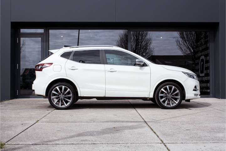 Lang hebben wij in 2023 gezocht naar de Nissan Qashqai 1.3 DIG-T Tekna + voor onze vaste klant. Er zijn diverse uitvoeringen zoals de N-Connecta, N-Tec, Tekna en Tekna +. Laatst genoemde is de meeste volle en dikste uitvoering van de Qashqai en helemaal in het wit parelmoer metallic zoals deze. Rechtstreeks afkomstig van de tweede eigenaar en netjes onderhouden wordt het nu tijd voor de opvolger. De Tekna + onderscheidt zich van de andere varianten door o.a. het glazen dak, de luxe lederen bekleding met elektrische verstelling, het Bose audio systeem, de RVS kleurige accenten en de 19" lichtmetalen velgen.