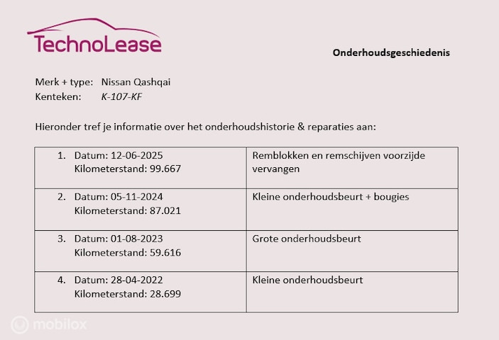 - De volledige onderhoudshistorie is bij ons bekend en gedocumenteerd.