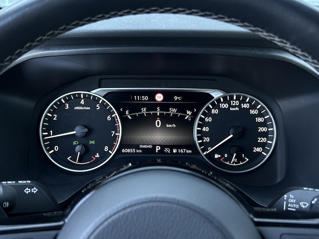 U geniet nog meer van het rijden met uw Nissan omdat u wordt beschermd door intelligente veiligheidssystemen. In het instrumentarium laat de verkeersborddetectie de actuele verkeersborden zien. Een camera houdt de juiste koers binnen de rijstrook in de gaten en het Lane-keeping systeem corrigeert bij afwijkingen. Als een fietser of andere weggebruiker zich net buiten uw zichtveld naast de auto bevindt, slaat de actieve dodehoekdetectie meteen alarm. Verder is deze auto uitgerust met forward collision warning system, hill hold functie, brake assist, vermoeidheidsherkenning en bandenspanningcontrolesysteem.