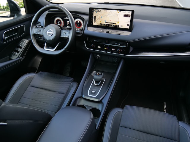 Het digitale dashboard ondersteunt u voortdurend met actuele, bruikbare informatie. De functie van de 360 graden camera in deze auto is om u een totaaloverzicht van de omgeving te geven, ongeacht hoe smal de straat of parkeerplek is. Als u de adaptive cruise control inschakelt, regelt de auto zelf de snelheid en de afstand tot de auto voor u. Kop aan kont langzaam rijden: dan is afstand houden soms lastig. De file assistent helpt en zorgt automatisch voor veilige ruimte tot de voorligger. Ook als die tot stilstand komt. Via uw smartphone en Connected Services checkt u eenvoudig de belangrijke functies van de auto, overal en altijd. De uitrusting van deze Nissan is met full map navigatiesysteem, achteropkomend verkeer waarschuwing, kruisend verkeer detectie, automatische airconditioning, sportstuur met schakelpaddels en draadloos opladen behoorlijk compleet.