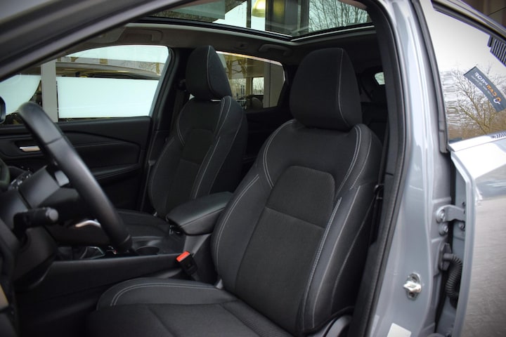 Deze Nissan is voorzien van verschillende intelligente veiligheidsvoorzieningen. Ze kijken tijdens het rijden als het ware met u mee, ze signaleren potentieel gevaarlijke situaties en in een aantal gevallen kunnen ze ook ingrijpen. Dat de auto steeds meer taken van de bestuurder overneemt, merkt u bijvoorbeeld aan het systeem voor verkeersbord-detectie in deze auto. Met het Lane-keeping systeem komt u nooit per ongeluk buiten de rijstrook. Als een ander voertuig in uw dode hoek rijdt, waarschuwt het systeem met een signaal. U bent mede dankzij forward collision warning system, hill hold functie, brake assist, vermoeidheidsherkenning en bandenspanningcontrolesysteem steeds veilig onderweg.