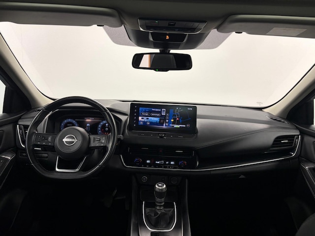 Met het digitale dashboard in deze auto kunt u de interface van uw cockpit personaliseren. Met de hulp van vier camera's, biedt de 360 graden camera op deze auto een panoramisch zicht, wat bijzonder nuttig is bij het parkeren en manoeuvreren. Als u de adaptive cruise control inschakelt, regelt de auto zelf de snelheid en de afstand tot de auto voor u. Veilig en comfortabel rijden wordt nog eens versterkt door Connected Services, zodat u diverse vitale functies van de auto altijd kunt checken in de app. In deze Qashqai vindt u schakelaars op het stuur om het navigatiesysteem te bedienen en het audio-installatiesysteem met DAB-ontvangst. De uitrusting van deze Nissan is met achteropkomend verkeer waarschuwing, kruisend verkeer detectie, automatische airconditioning, draadloos opladen, regensensor en keyless entry behoorlijk compleet.