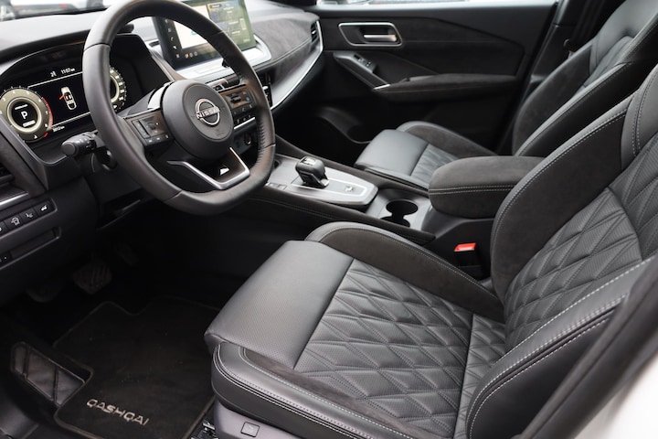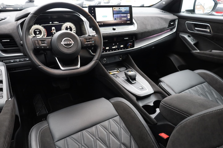 Met zijn ruimte en zijn prestaties is dit de auto die bij u past. Hoewel de auto uit 2025 komt, heeft hij maar 3012 kilometer gereden. In deze auto vindt u een benzinemotor en een automatische transmissie. Houdt u van een luxe uitstraling? Dan is het lederen interieur een heel aantrekkelijke extra! De verwarmbare voorstoelen inclusief massagefunctie benadrukken nog maar eens dat we hier te maken hebben met een regelrechte verwenauto. De achterklep opent automatisch met een druk op de knop. Handig als u met volle handen staat. Geniet van de lichtinval en het uitzicht van het grote glazen panoramadak. Bij deze Nissan Qashqai is aan alles gedacht, tot en met een verwarmd stuurwiel aan toe. Voorzien van matrix LED-verlichting. De auto dimt precies dat deel van de lichtstraal waar de voor- of tegenliggers in rijden. De overige segmenten blijven aan en verlichten de weg. Tot de uitrusting van deze Nissan behoren ook 20 inch lichtmetalen velgen, dakspoiler, extra getint glas, in delen neerklapbare achterbank, LED-achterlichten en snelheidsafhankelijke stuurbekrachtiging.