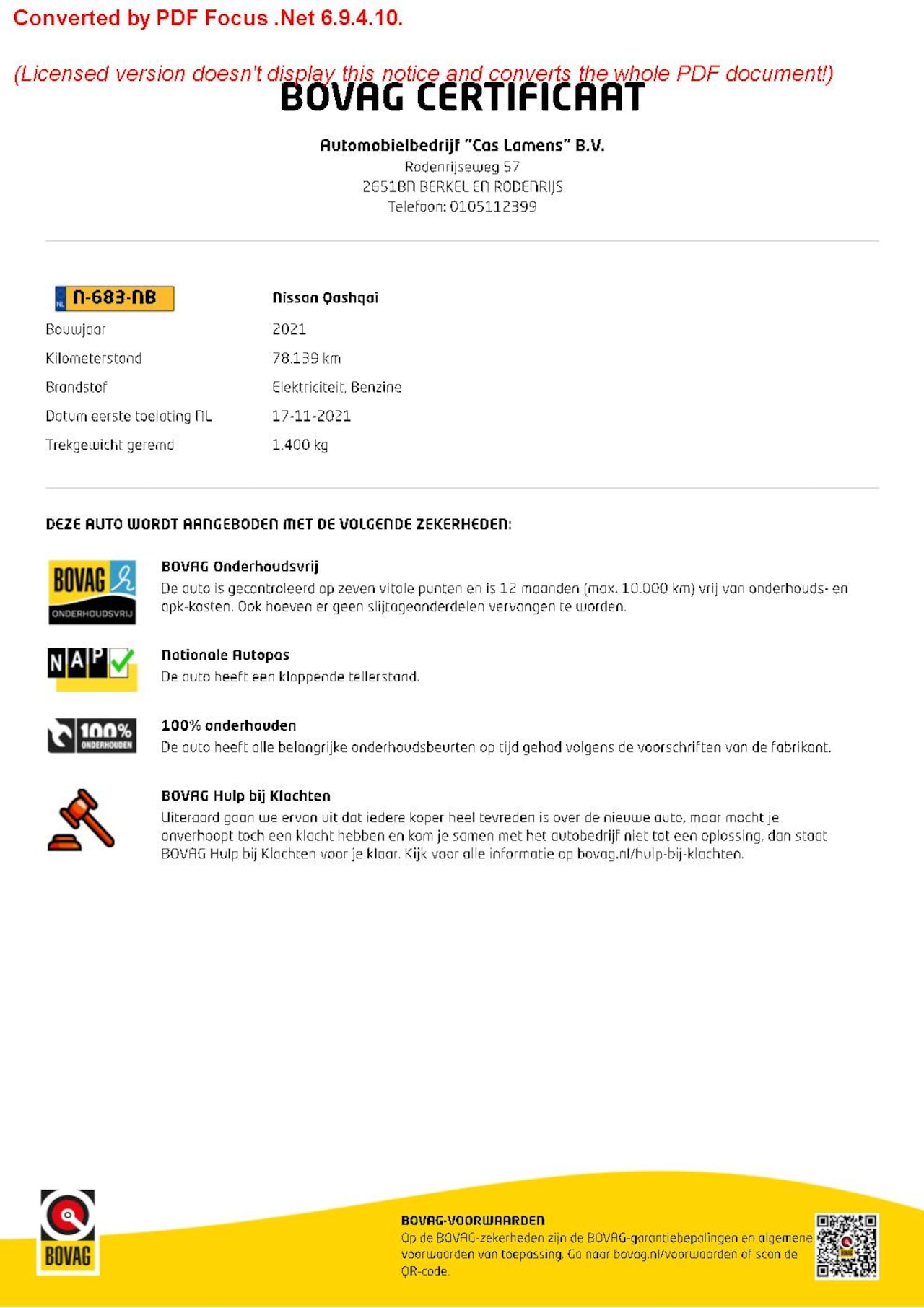Bij aflevering
