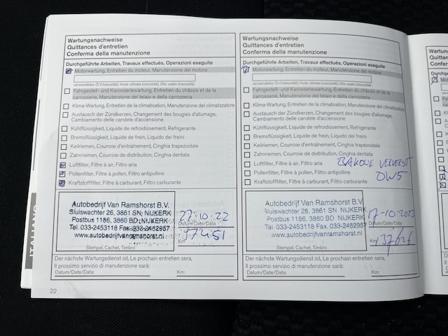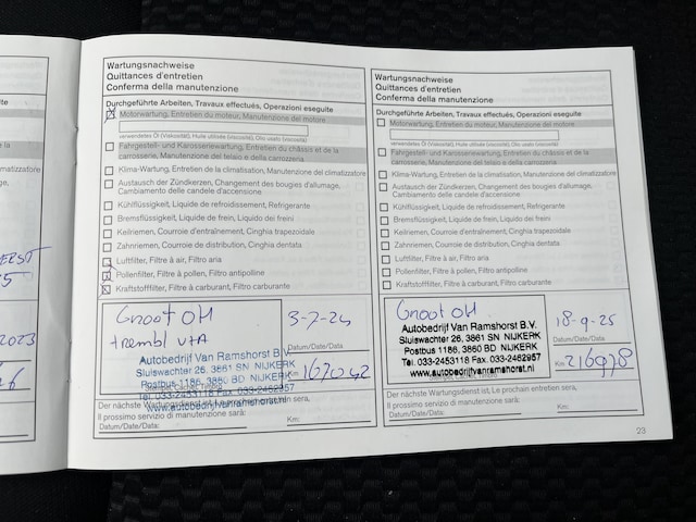 Onderhoudsboekjes: Aanwezig