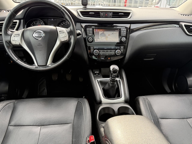 Met een auto als deze Nissan Qashqai komt u absoluut goed voor de dag. In deze SUV vindt u een viercilinder benzinemotor en een handgeschakelde zesversnellingsbak. Het lederen interieur zorgt voor een klasse uitstraling. Doe maar luxe! Neem plaats in de verwarmbare voorstoelen en voel de weldaad in koude dagen. Geniet van de lichtinval en het uitzicht van het grote glazen panoramadak. Bij de zeer complete uitrusting van deze auto behoren ook 19 inch lichtmetalen velgen, LED koplampen, donker getint glas achter en in delen neerklapbare achterbank.