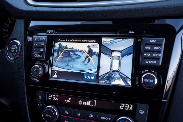 De vier camera's die samen de 360 graden camera vormen, bieden u de mogelijkheid om obstakels in elke richting te zien. U weet altijd waar u moet zijn, dankzij het full map audio-navigatie. Dankzij automatische airconditioning is het interieur behaaglijk warm of verfrissend koel. Met de DAB-ontvanger luistert u naar glasheldere digitale radio. U kunt bij het inparkeren natuurlijk niet aan alle kanten ogen hebben. Daarom is deze NISSAN X-Trail voorzien van parkeersensoren! Ook regensensor, cruise control met snelheidsbegrenzer, keyless entry, automatisch dimmende binnenspiegel, 2 isofix-aansluitingen en centrale deurvergrendeling met afstandsbediening zijn aan boord.