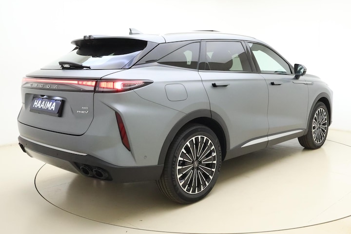 De eendrachtige samenwerking van de benzinemotor en de elektromotor geeft deze Omoda 9 zijn geweldige rijkwaliteiten. Het gaat hier om een nieuwe auto, hij is nu direct leverbaar. Met de elektrisch bedienbare achterklep kunt u handsfree bij de kofferruimte komen. En daarna prinsheerlijk plaatsnemen in het lederen interieur. Verwen uzelf met stuurverwarming, stoelverwarming met massagefunctie en de verwarmbare achterbank, ongeacht de temperatuur buiten. Het glazen panoramadak laat meer licht binnen in het interieur en zorgt voor een magnifiek uitzicht naar buiten. In deze Omoda profiteert u onder andere ook van: 20 inch lichtmetalen velgen, LED koplampen, adaptief dempingsysteem, geluidsisolerende ramen, in delen neerklapbare achterbank en LED-achterlichten.