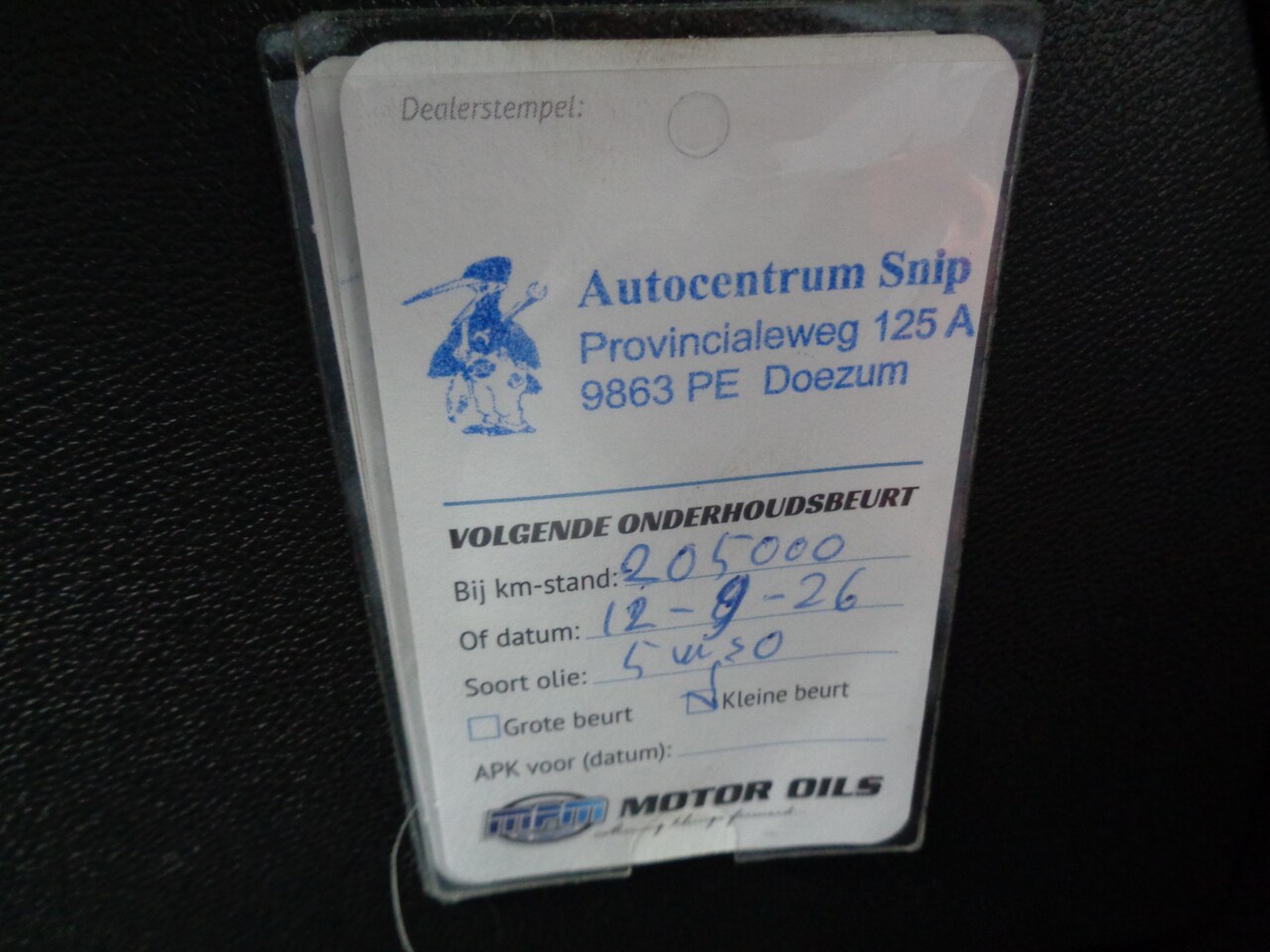 | APK | Bij aflevering |