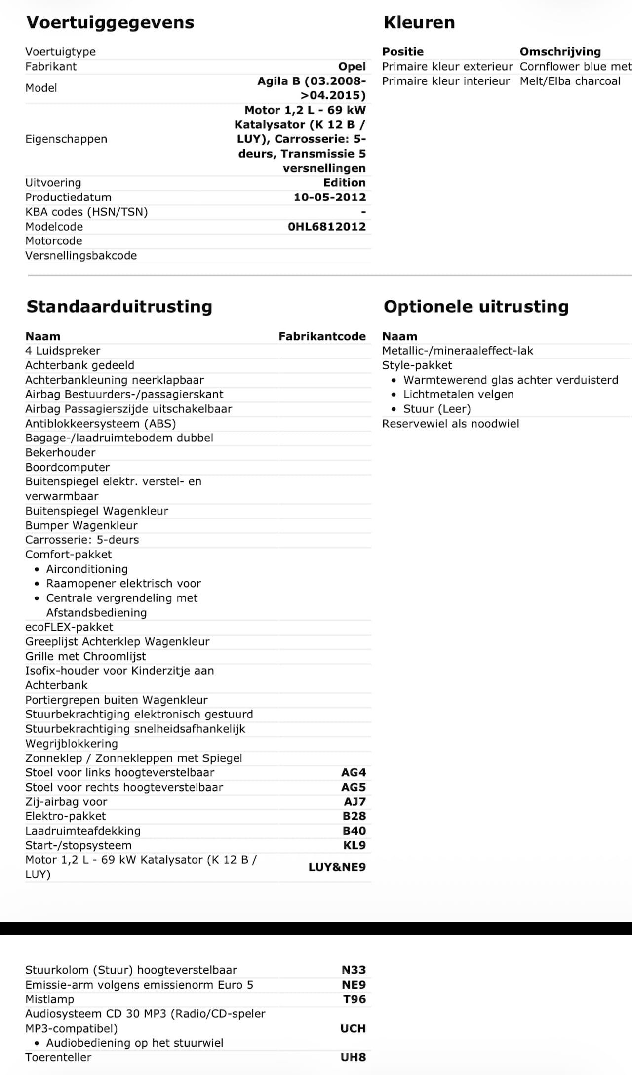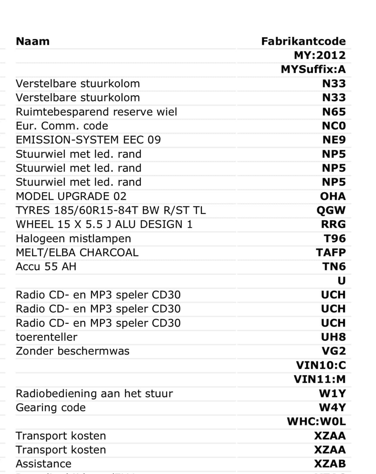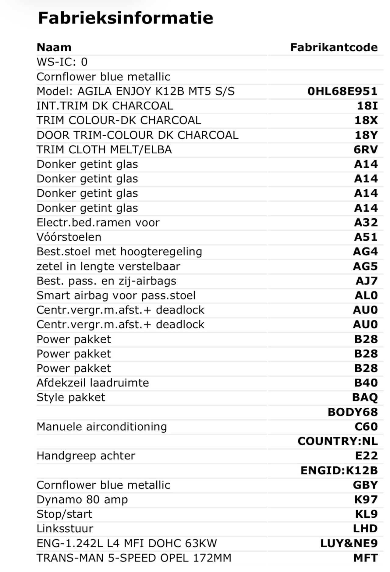 | Oorspronkelijke kleur | - |
