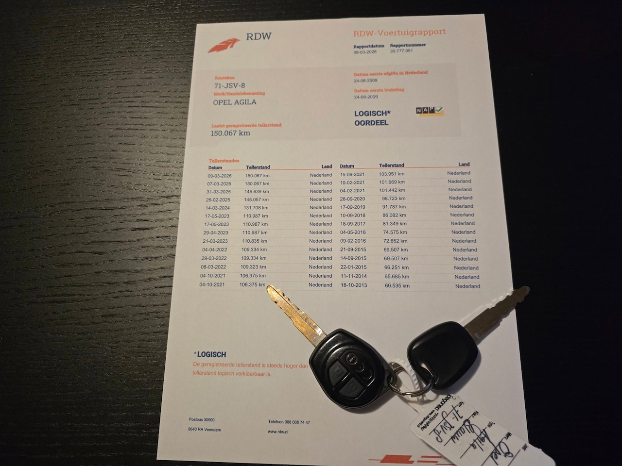 Nationale Auto Pas: de kilometerstand is gecontroleerd en logisch bevonden. 150.108 km
