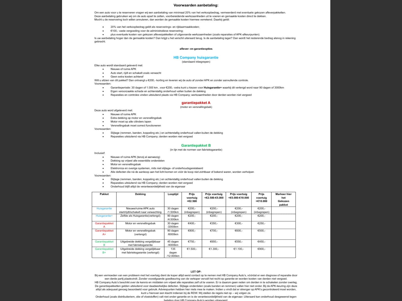 APK Bij aflevering