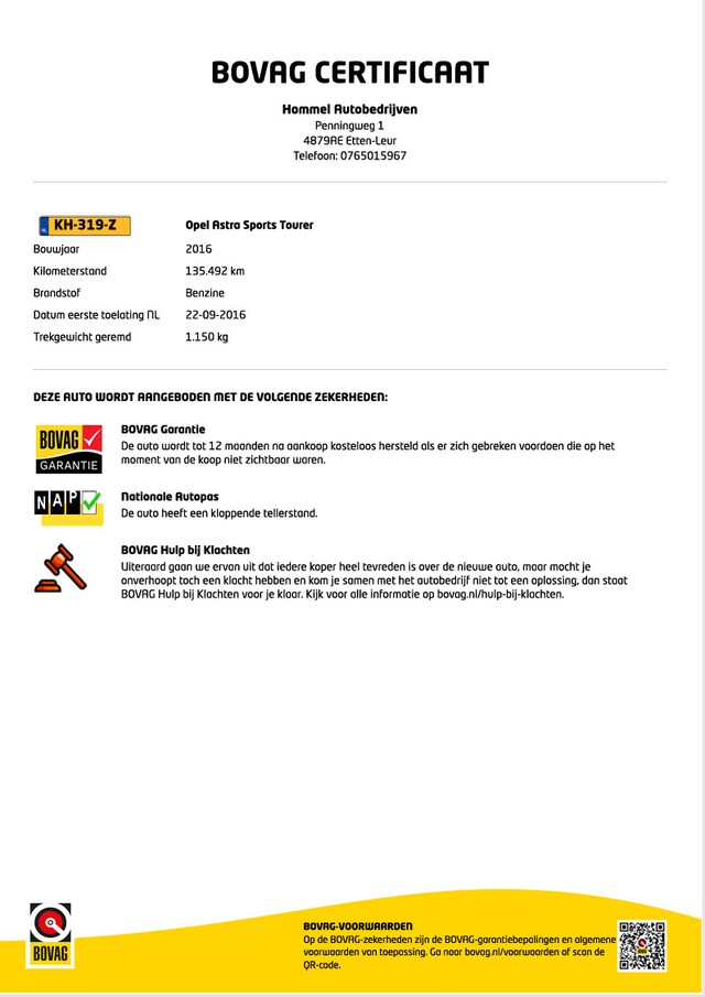 BOVAG Afleverbeurt: Ja