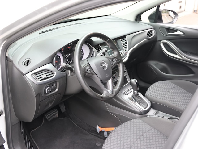 Typerend voor Duitse auto's als deze Opel Astra Sports Tourer is dat een mooi ontwerp en uitstekende rijeigenschappen hand in hand gaan. De stijlvol getekende carrosserie verhult een state-of-the-art techniek, motorisch laat deze auto niets te wensen over en het weggedrag van de Astra Sports Tourer is uitstekend. De aandrijving van deze Opel wordt verzorgd door een driecilinder benzinemotor en een automatische transmissie. Bij de rijke uitrusting horen ook 16 inch lichtmetalen velgen, LED koplampen, warmtewerend glas en in delen neerklapbare achterbank.