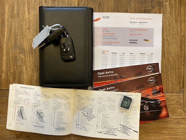 WIJ ZIJN ALLEEN OPEN OP TELEFONISCHE AFSPRAAK. Bijzonder nette en rijk uitgeruste Opel Astra Sports Tourer 1.4 Turbo Cosmo, slechts 126Dkm. NAP op de klok en met o.a. Half Leder/Stof interieur, Automatische Klimaatregeling, Navigatiesysteem, Bluetooth (Carkit), Cruise Control, Park Distance Control, Origineel Licht Metaal, Afneembare Trekhaak en nieuwe APK. Inruil is uiteraard bespreekbaar.