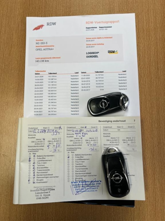 Onderhoudsboekjes: Aanwezig