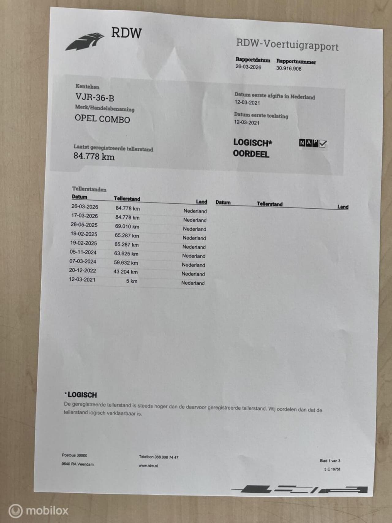 | Kilometerstand | 84.778 km |