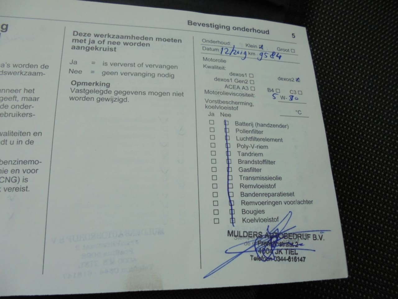 | APK | Bij aflevering |