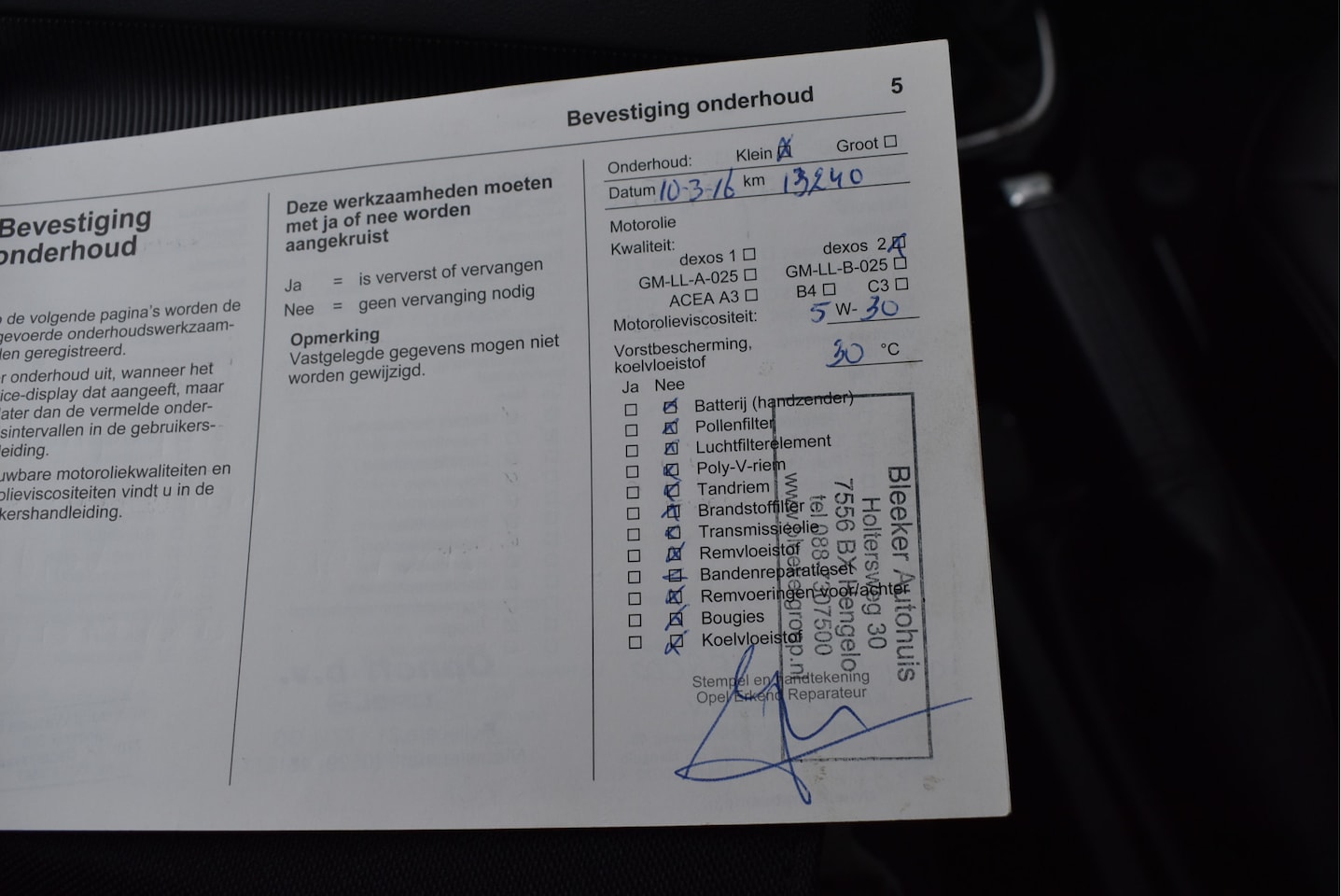 | APK | Bij aflevering |