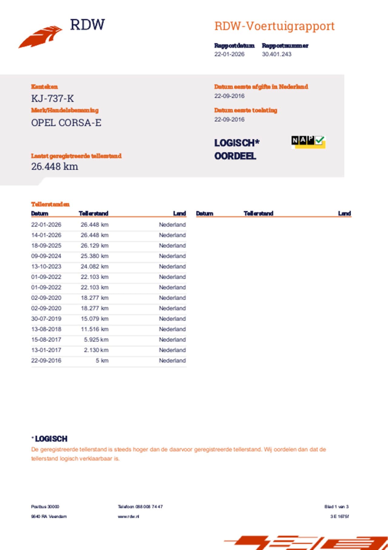 | Kilometerstand | 26.448 km |