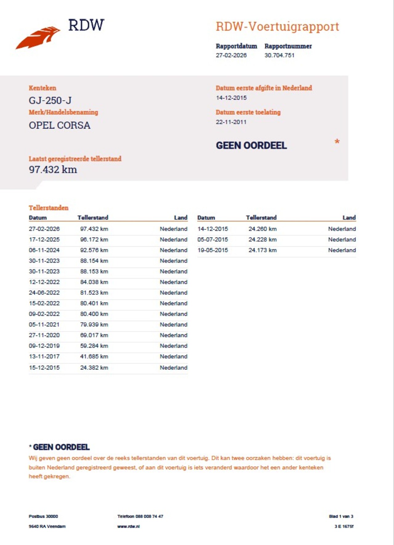 | Kilometerstand | 97.432 km |