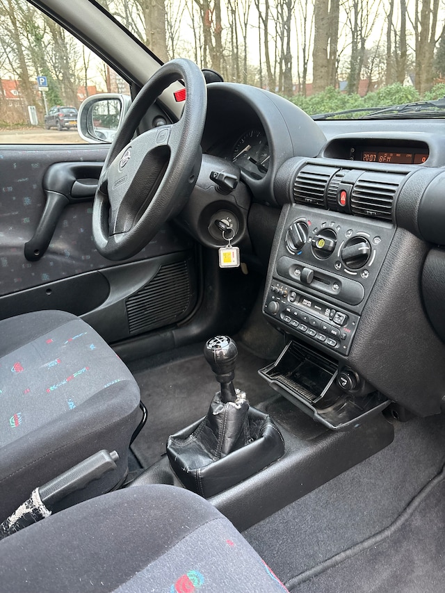 Mooie Opel Corsa uit 1999, met maar 102350 km op de teller, APK tot oktober 2026. Inmiddels 5 jaar in mijn bezit en heeft me nooit in de steek gelaten! De Opel Corsa rijdt lekker en neemt je overal mee naartoe. De auto is voorzien van ARKO (Alle Ramen Kunnen Open; geen airco dus). Wel kun je genieten van een open schuifdak, wat in de zomer fijne verkoeling biedt. De auto biedt daarnaast radio en een extra functie om via de radio Spotify af te spelen (los onderdeel). Ook is de auto uitgerust met een reservewiel en heeft de auto nog alle matten. De auto komt uit 1999, dus heeft wat gebruik sporen en hagelschade, maar buiten dat ziet de Corsa er nog goed uit. Met pijn in mijn hart, zet ik hem nu te koop. Hopelijk vind ik via deze weg iemand die er even goed voor kan zorgen! Als je interesse hebt, stuur vooral een berichtje en kom een rondje rijden. Ideaal als eerste auto, voor erbij of gewoon als ‘de’ auto.