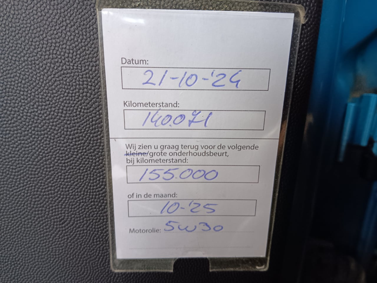 | APK | Bij aflevering |