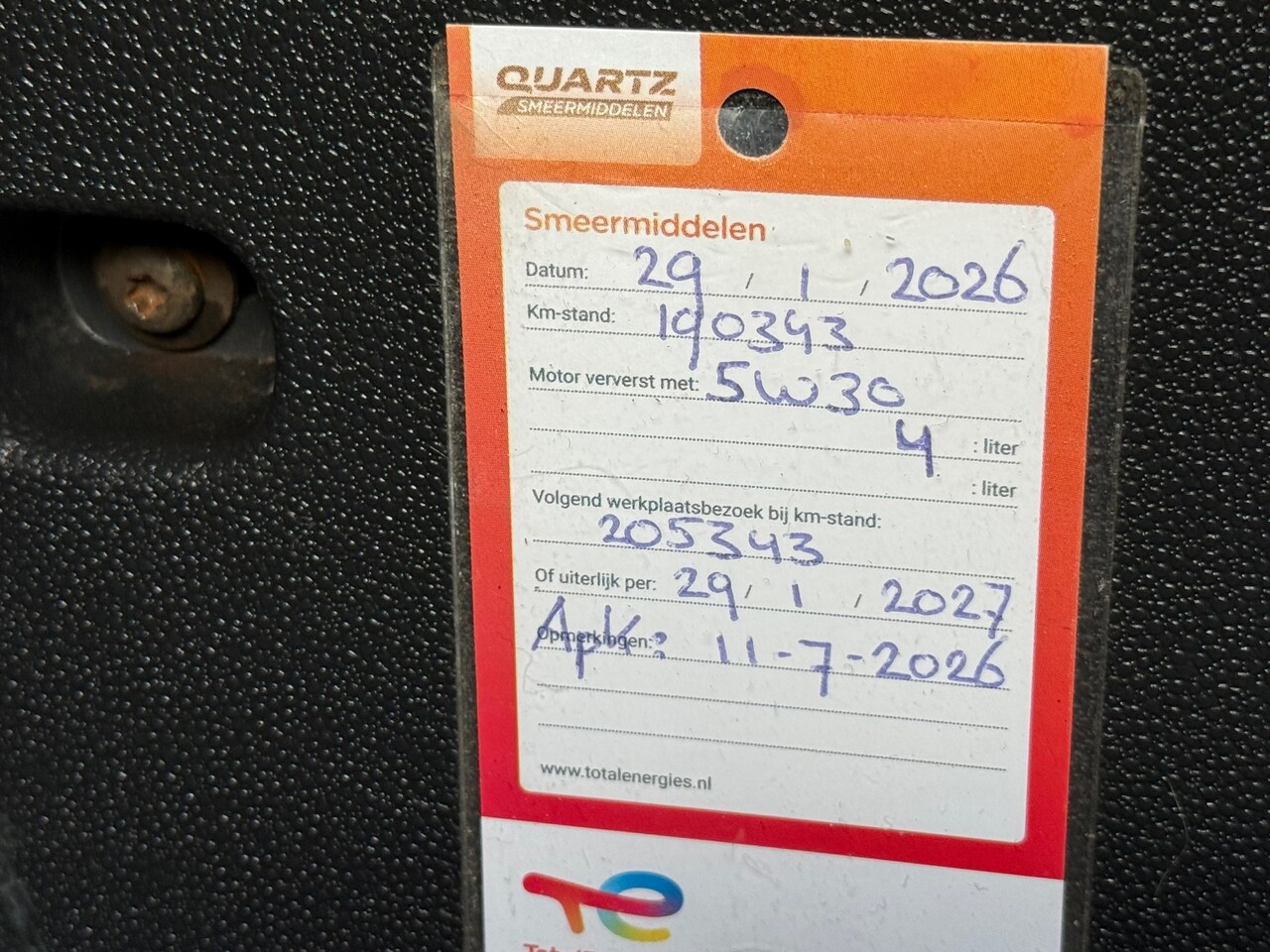 | APK | Bij aflevering |