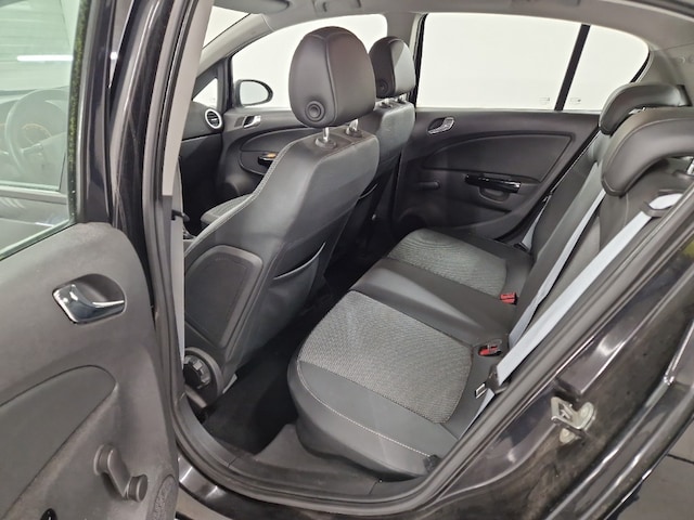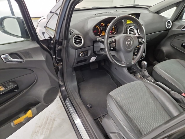 Deze Opel Corsa oogt strak met haar zwarte metallic lak en 16-inch lichtmetalen velgen. De elektrisch verstelbare en verwarmbare buitenspiegels maken het rijden gemakkelijk en comfortabel. Mistlampen voor, automatische dimlichten en een warmtewerende voorruit zorgen voor extra veiligheid en zichtbaarheid.