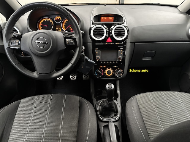 Het meest verkochte automerk in Nederland is en blijft Opel. In deze auto vindt u een benzinemotor en een handgeschakelde vijfversnellingsbak. Deze Opel Corsa komt met een ingebouwd start-stopsysteem. De motor gaat uit bij stilstaan en start direct weer als u het gaspedaal aanraakt. Lekker zuinig! Natuurlijk behoren 17 inch lichtmetalen velgen, sportonderstel, extra getint glas, in delen neerklapbare achterbank en snelheidsafhankelijke stuurbekrachtiging ook tot de uitrusting van deze complete auto. Het audiosysteem is helemaal van nu, inclusief bluetooth en usb-aansluiting. Electronic climate control verwarmt of koelt het interieur met een druk op de knop. Natuurlijk is een complete auto als deze ook voorzien van sensoren die de omgeving in de gaten houden. Deze Opel heeft niet alleen een automatisch inschakelbare verlichting aan boord, maar ook een regensensor. Op een rustige weg komt de cruise control helemaal tot z'n recht. Extra opties op deze auto zijn: navigatiesysteem, lederen stuur, isofix-aansluiting, centrale deurvergrendeling met afstandsbediening en boordcomputer. Een proefrit levert het overtuigende bewijs. Bel nu!