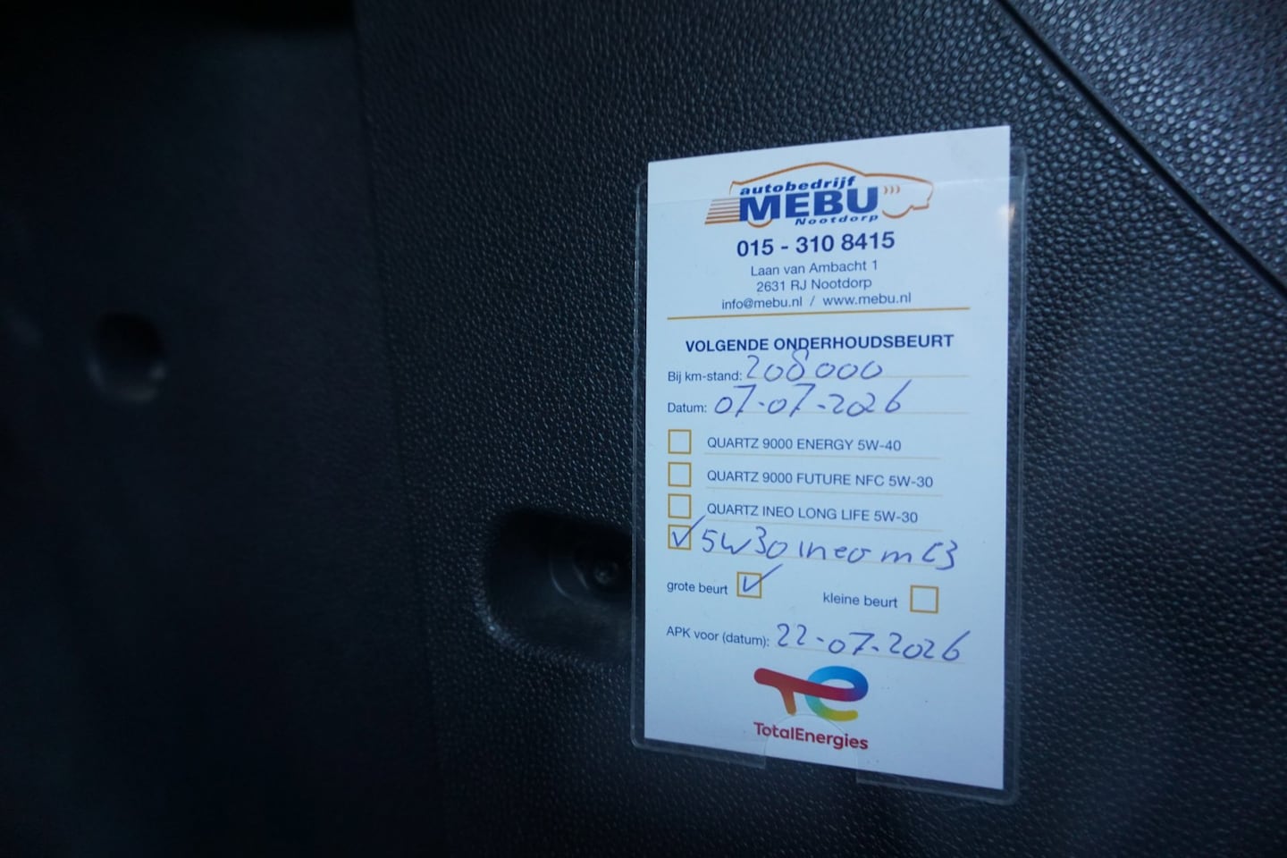 | APK | Bij aflevering |