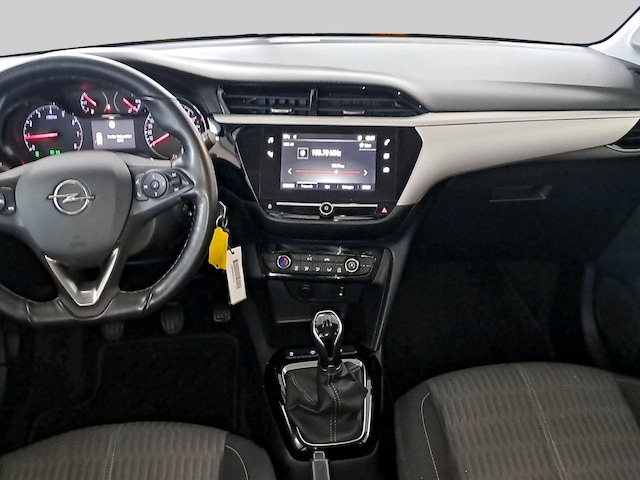 Deze Corsa staat op stijlvolle 16-inch lichtmetalen velgen en is voorzien van airconditioning voor een aangenaam klimaat in de auto. De elektrisch bedienbare en verwarmde buitenspiegels, samen met de boordcomputer met een 3,5-inch grafisch infodisplay, zorgen voor extra gemak. Het bandenspanningscontrolesysteem houdt de veiligheid in de gaten, en voor comfort is de bestuurdersstoel in hoogte verstelbaar.