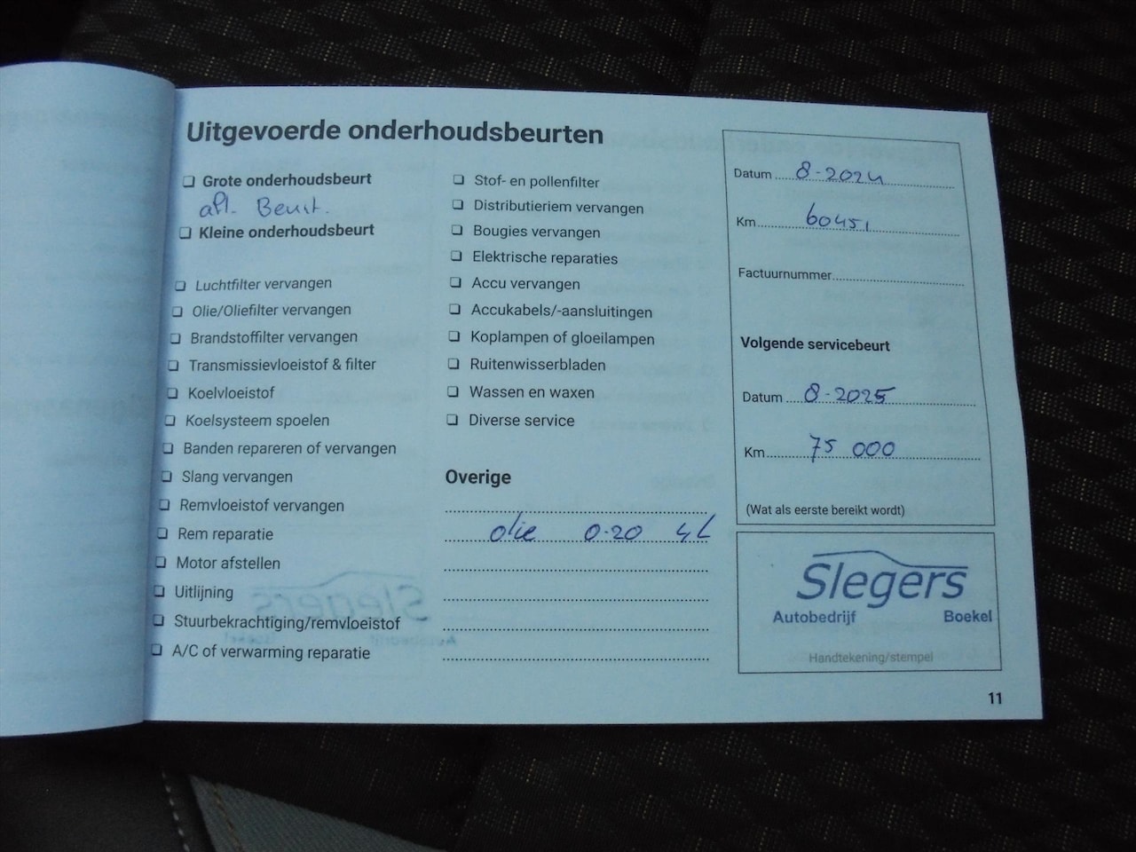 | APK | Bij aflevering |