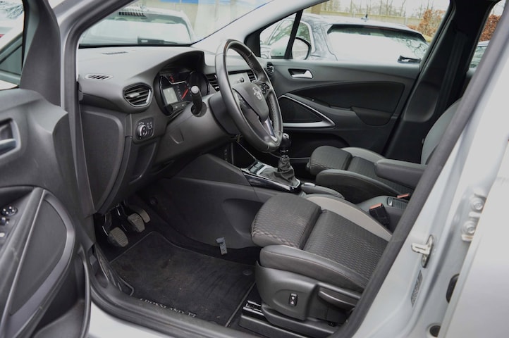 Opel Crossland X 1.2 Turbo Edition, voorzien van o.a.: airco, centrale vergrendeling op afstand, full-map navigatiesysteem, elektrische ramen voor en achter, multifunctioneel lederen stuurwiel, Apple Carplay/Android Auto, parkeersensoren achter, mistlampen voor, lichtmetalen velgen, dakrails, cruise control, trekhaak, onderhoudsboekjes volledig ingevuld aanwezig.