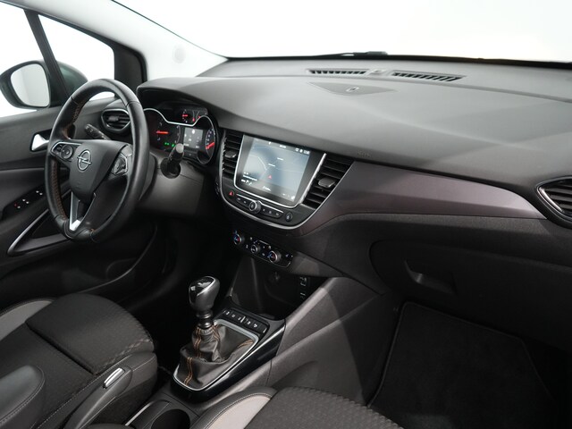 Kwaliteit, techniek, prestaties en rijcomfort. Geldt voor alle Duitse merken. Daar kunt u blind van op aan. In deze auto vindt u een benzinemotor en een handgeschakelde zesversnellingsbak. De verwarmbare voorstoelen benadrukken nog maar eens dat we hier te maken hebben met een regelrechte verwenauto voor bestuurder en bijrijder. De comfortstoelen zorgen voor precies de juiste zit, hoe lang de rit ook is. Nooit meer koude handen of koude vingers in de auto. Stuurverwarming zorgt ervoor dat het stuur behaaglijk warm aanvoelt. In deze auto profiteert u onder andere ook van: 16 inch lichtmetalen velgen, LED koplampen, extra getint glas, in delen neerklapbare achterbank en snelheidsafhankelijke stuurbekrachtiging. Kommaar-kommaar-kommaar, aldus de achteruitrijcamera. Iedere centimeter vrije ruimte komt haarscherp in beeld. Schadevrij inparkeren maar! Hoe is het met de banden, de accu en andere onderdelen? Connected Services maakt het inzichtelijk, 24/7 via de app. De bediening van het audiosysteem en het full map navigatiesysteem gebeurt met knoppen op het stuur. De audio is overigens voorzien van DAB-radio voor een altijd heldere ontvangst. De automatische airconditioning zorgt voor een prettige binnentemperatuur. Het drukke verkeer eist onderweg al uw aandacht op. Daarom is het goed dat deze Opel is voorzien van diverse systemen die u assisteren tijdens de rit. Een automatisch inschakelbare verlichting neemt het waar als het donker wordt of gaat schemeren, en schakelt dan automatisch de verlichting in. Op dezelfde manier "ziet" de regensensor de eerste spatjes regen en schakelt dan de ruitenwissers in, en als het harder gaat regenen zet hij de ruitenwissers ook in een snellere stand. De Opel is standaard voorzien van: cruise control, keyless entry en automatisch dimmende binnenspiegel. In de Opel Crossland X heeft uw veiligheid en die van uw omgeving prioriteit. Onbedoeld buiten de rijstrook raken wordt voorkomen door het Lane-keeping systeem. In deze Opel vinden we verder een dodehoekdetectie, hill hold functie en bandenspanningcontrolesysteem. Bent u nieuwsgierig naar deze Opel Crossland X? Laat het ons dan snel weten.