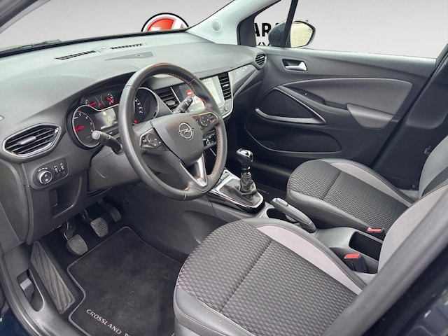 Het navigatiesysteem is uw vertrouwde gids, waarheen de reis ook gaat. Het comfort wordt verhoogd door de aanwezige automatische airconditioning. Met de audiobediening op het stuur bedient u het audiosysteem zonder uw ogen van de weg te halen. Met de DAB-ontvanger heeft u keuze uit talloze digitale radiozenders met de allerhoogste geluidskwaliteit. Parkeerplekken worden er niet ruimer op. Maar met de aanwezige parkeersensoren krijgt u deze Opel Crossland X zonder problemen op z'n plaats. Ook regensensor, cruise control, keyless entry, buitentemperatuurmeter, automatisch dimmende binnenspiegel en lederen stuur horen tot de voorzieningen op deze auto.