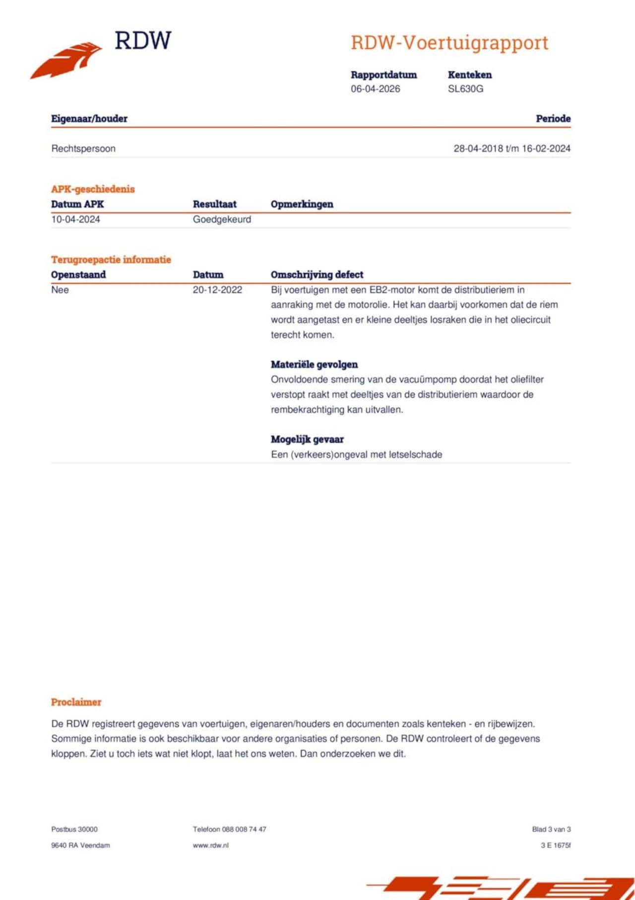 | Kenteken | SL-630-G |
