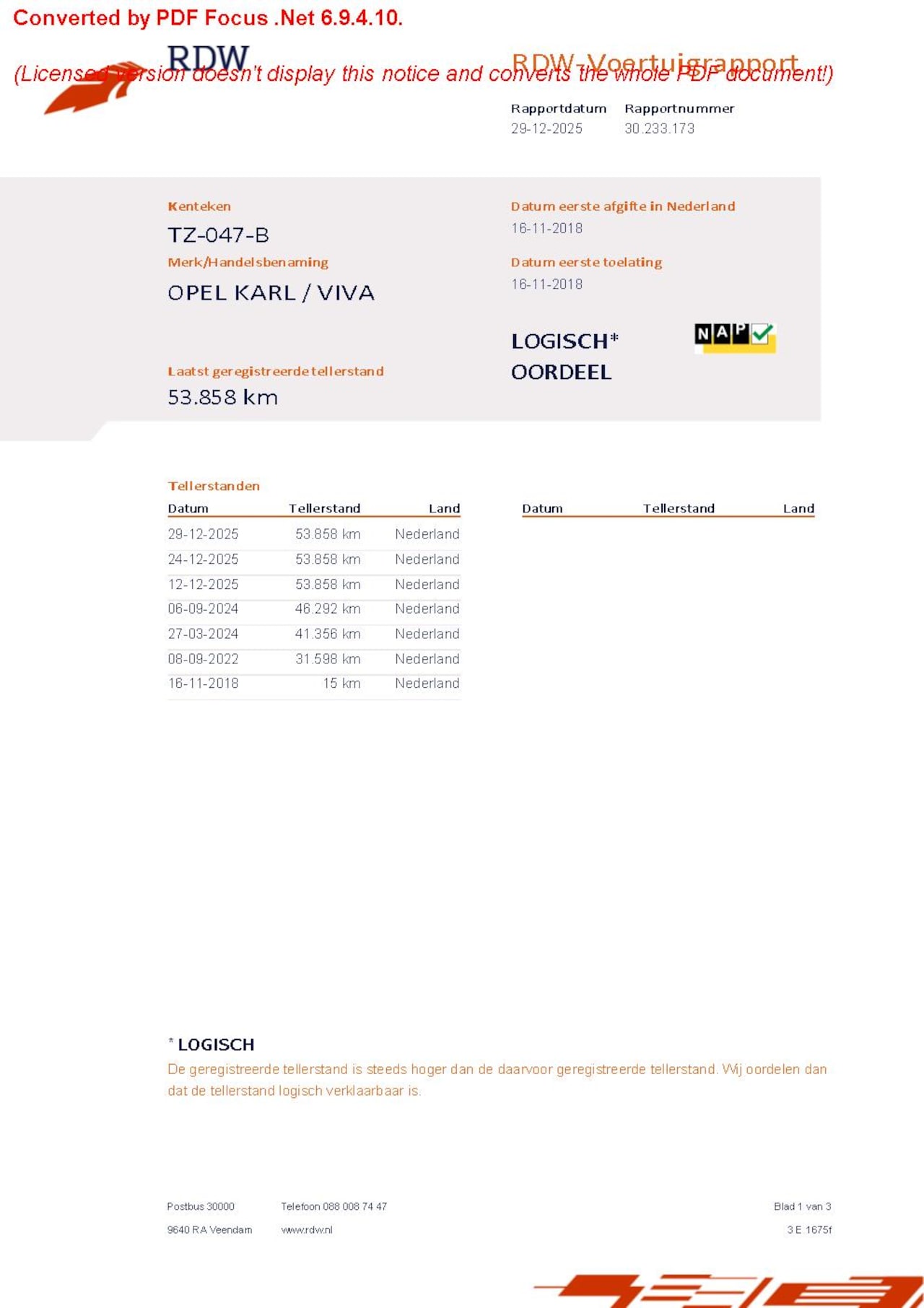 Bij aflevering