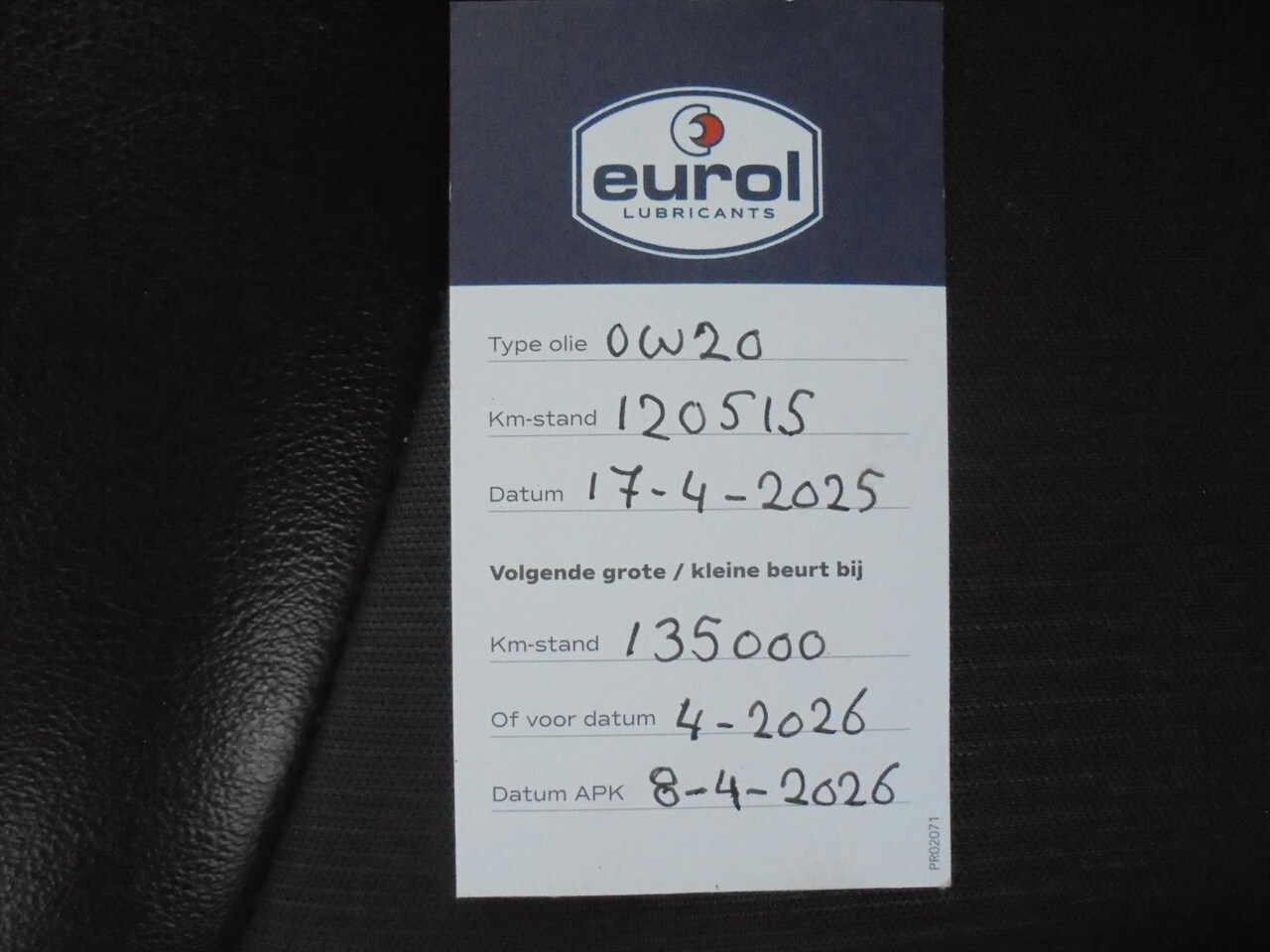 | APK | Bij aflevering |