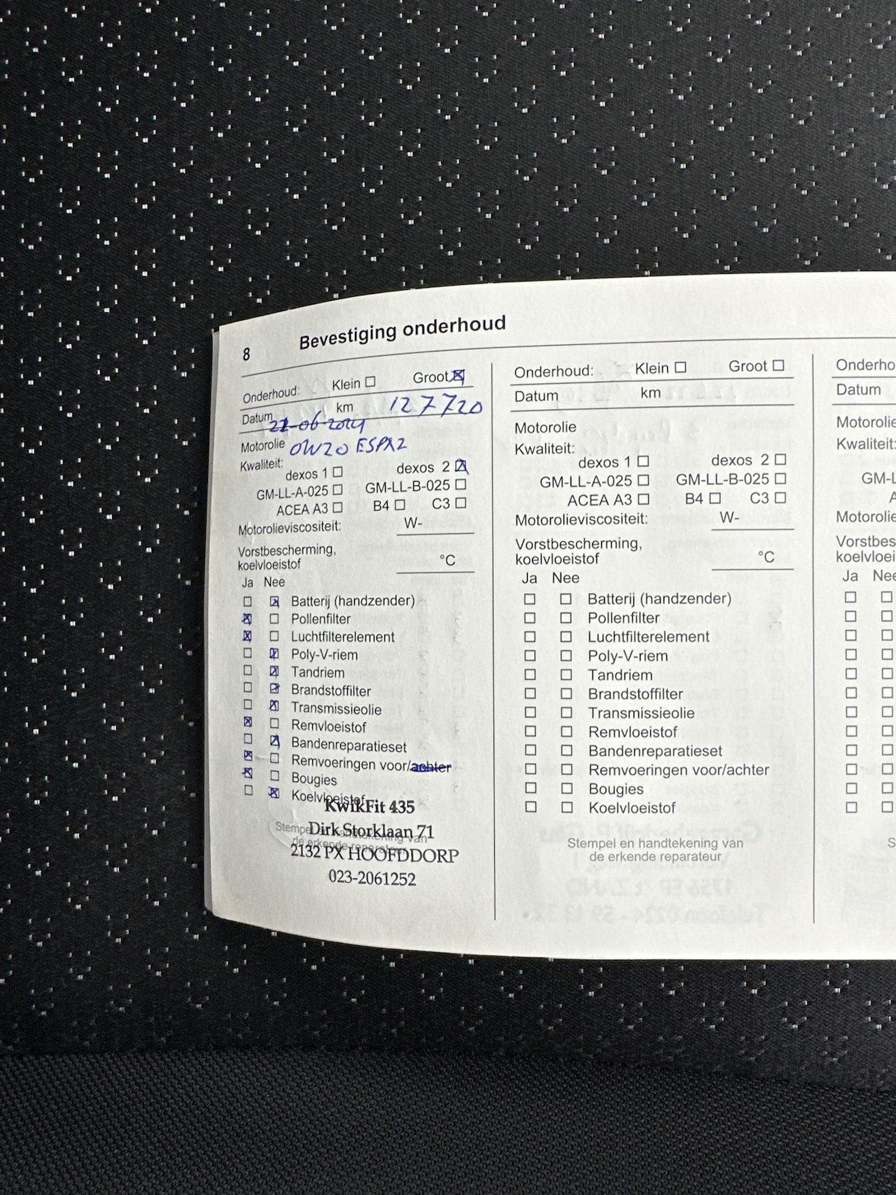 | APK | Bij aflevering |