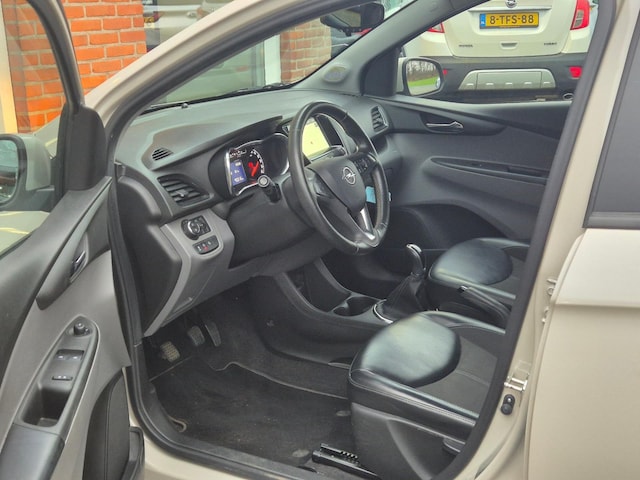 Zeer mooie en uiterst complete Opel Karl Innovation van eerste eigenaar. 100% dealer onderhouden in een unieke kleur Creamy Beige / Sandbeige Pearl Metallic die onder andere is voorzien van climate control (automatisch geregelde airco), cruise control met snelheidsbegrenzer, elektrische ramen, boordcomputer, centrale deurvergrendeling op afstand, parkeersensoren achter, in hoogte verstelbaar verwarmd lederen stuur met stuurbekrachtiging, verwarmde voorstoelen, 15 inch lichtmetalen velgen, isofix bevestiging voor kinderzitjes en een origineel navigatiesysteem met bluetooth carkit, dab ontvanger, stuurbediening, usb aansluiting en Apple Carplay & Android Auto koppelmogelijkheden.