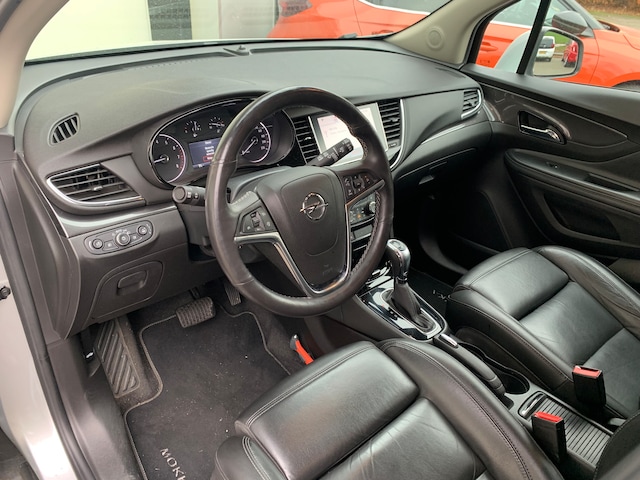 De Opel Mokka X is gebouwd met hoogwaardige techniek en maakt het rijden van lange ritten, maar ook korte stukjes, tot een feestje. De krachtige benzinemotor van deze auto is gekoppeld aan een automatische transmissie. Heerlijk comfortabel zitten, en genieten van stijlvolle kwaliteit? Deze auto heeft een fraai lederen interieur. Tijdens gure dagen is het prettig zitten in de verwarmbare voorstoelen. Ontspannen rijden in een optimale zithouding: daarvoor zorgen de comfortstoelen. Het interieur glanst in daglicht door het elektrisch bedienbare panoramadak. Opwarmen in koude dagen? Pak het verwarmd stuurwiel met beide handen aan! Bij de uitrusting van deze auto horen onder meer 17 inch lichtmetalen velgen, LED-dagrijverlichting, extra getint glas, in delen neerklapbare achterbank en snelheidsafhankelijke stuurbekrachtiging. Achteruitrijden en inparkeren worden een eitje dankzij de achteruitrijcamera. De jeugd is niet los te maken van hun smartphone, en dat zie je ook aan deze jonge auto. Via een speciale app staat u overal en altijd in contact met uw vierwieler. Superhandig! Het full map navigatiesysteem geeft duidelijke instructies. Zo komt u veilig en vlot aan waar u moet zijn. Natuurlijk is er ook electronic climate control aanwezig. Andere zender, andere muziek, meer volume? Met de audiobediening op het stuur is het makkelijk en veilig geregeld. En deze auto heeft ook DAB ontvangst, regensensor, cruise control, keyless entry, automatisch dimmende binnenspiegel en boordcomputer als standaard uitrusting. De nieuwste veiligheidssystemen komen in deze Opel Mokka X samen. Verder is deze auto uitgerust met hill hold functie en bandenspanningcontrolesysteem. Probeer deze auto uit en maak een proefrit. We zetten 'm graag voor u klaar!